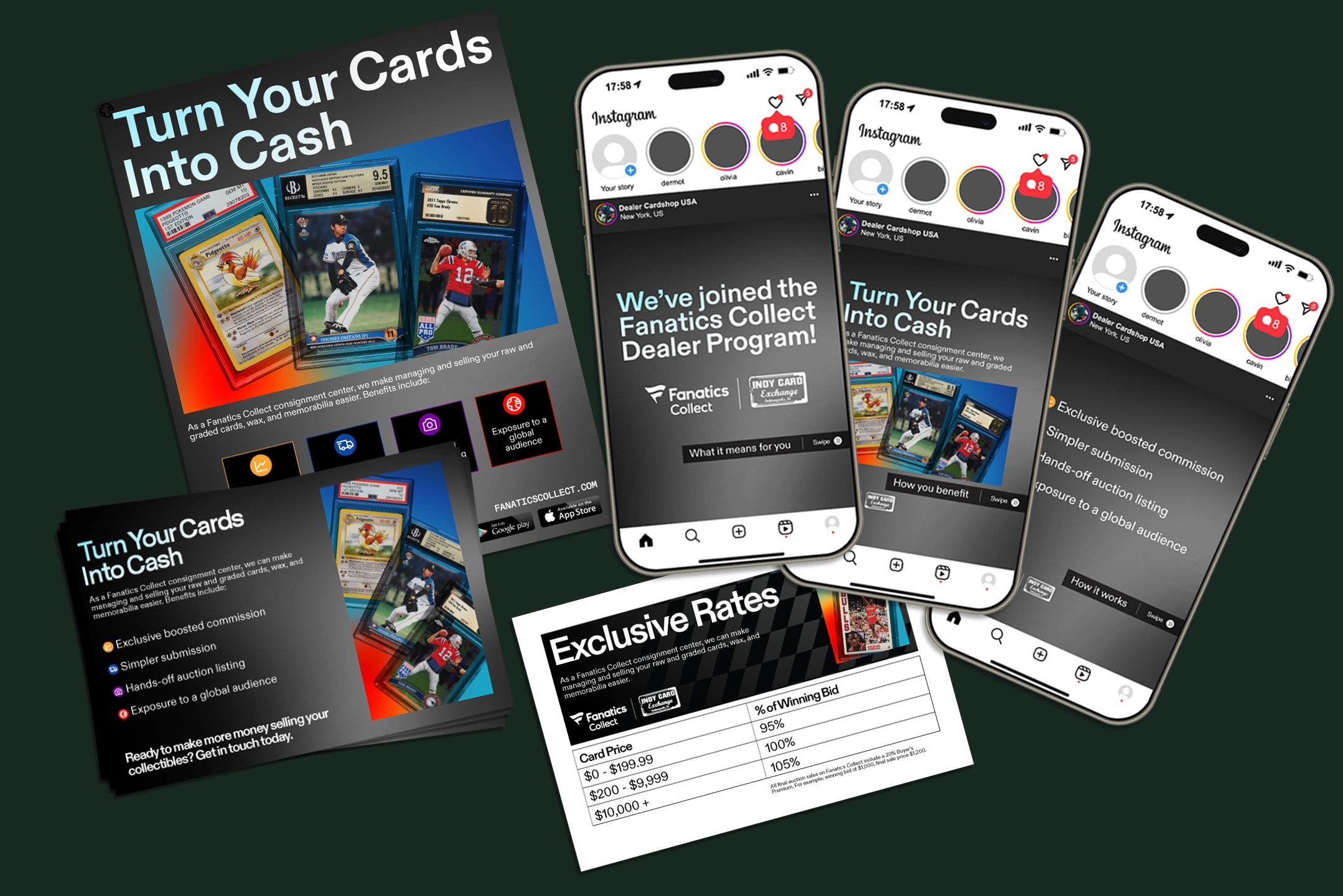 Developing a comprehensive suite of C2C marketing materials for partnered card shops to enhance their engagement and sales on behalf of Fanatics Collect.